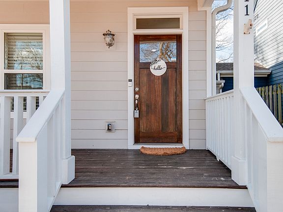 Open Sunday 2-4pm. Handsome & well maintained home in the Nations offers hardwood & tile flooring on the main level, new paint, gas fireplace, recessed lighting, crown moldings, granite, tile backsplash, under cabinet lighting, stainless farm sink, gas cooking, stainless appliance, & eat-in island. All bedrooms upstairs including large primary suite with private covered porch. Outdoor features include covered front porches, patio, fire pit, fenced back/side yard, storage, & off street parking.