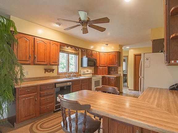 Brick, Ranch style home with walk out basement! Main floor features, a large living room, dining space, kitchen with raised panel solid oak cabinets and all appliances, main floor laundry/mud room with stackable washer/ dryer and sink, master bedroom with double closet, 2nd bedroom and full bath. The LL features a family room/rec area, retro bar/bar stools, electric fireplace, refrigerator & stove/ kitchenette, bath, and non-conforming bedroom. Freezer in Laundry room will stay with the home.