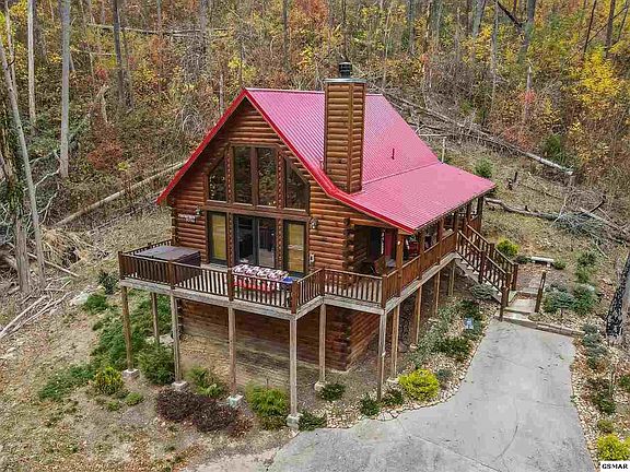 A real log cabin on the mountain. Its just what you have been looking for. This beautiful 2 bedroom 2 bath cabin with an additional bonus room will have everything on your wish list. It even has a basement, that you could finish out for a game room. This cabin is only 3 years old. Master bedroom is upstairs with its own private deck. There is a loft that has an extra seating area, that over looks the views. Beautifully decorated with everything to make you feel at home in the mountains. Kitchen cabinets are custom made with barn wood from local barns. Enjoy a wood burning fire in the fireplace on a cool winter night. A wall of windows look out over the mountains. Large deck with hot tub situated so you can see the views while you soak your troubles away. Sit and enjoy the rocking chairs on the front porch. You are close to Gatlinburg, all the area attractions and The Great Smoky Mountains National Park.