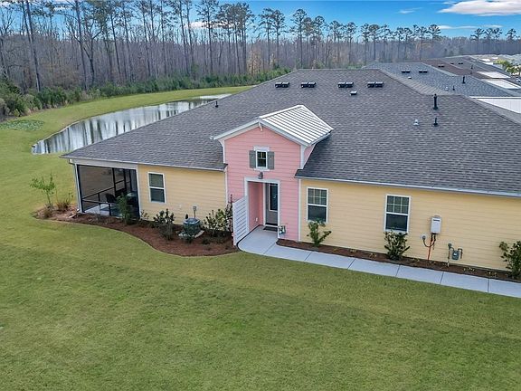 Location is key!! This bright, coastal inspired home is situated on a very private end lot overlooking natural preserve and long lagoon views! Enjoy morning sunshine, while watching the wildlife. This desirable Antigua floor plan boasts tastefully selected options including white shaker cabinets, tile backsplash, upgraded quartz countertops throughout, stainless appliances, LVP flooring, seamless shower door in primary, epoxy garage/lanai floors & much more. Just a short golf cart ride to the world class amenities! Enjoy all that Margaritaville has to offer, retirement has never been so fun!! 3 TV's convey, some furniture available. OSCREA
