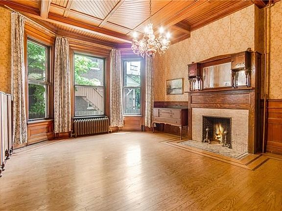 Welcome to Allegheny West and a truly architectural gem built by Edward Stotz in what is officially known as the smallest neighborhood in Pittsburgh. This 5 bedroom, 4.5 bath home offers 11 fireplaces, each with an antique mantel. The Grand Foyer features a large "turned" staircase, 12 ft. ceilings, an 8 ft. wide inlaid wood pocket door and original hand carved wood paneled doors and walls. The original carved wood wainscotting and coffered ceilings are stained in Old English brown, true to the period. An updated, fully equipped stainless steel eat-in kitchen awaits that gourmet cook. All the mechanicals have been updated and an environmentally Green SPF Forever Commercial Roof was installed on 5-19-19.The exterior brick and stone were newly repointed. A two-story carriage house is included. It faces Dounton Way and could easily be converted into a three car garage with an apartment or studio above. Enjoy owning your own piece of history in the original "Gold Coast" of Pittsburgh.
