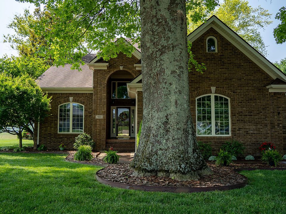 Amazing home in ''The Vineyard''. This one has all the amenities - 4 bedrooms, 3 bathrooms. Custom kitchen with island and granite; primary bathroom is huge with whirlpool and shower; walk in closets; formal living room and dining room; den; screened in porch from kitchen. Could be mothers quarters on first floor. Side entry garage; extra huge closet spaces for storage. A beautiful view of mountains; professional landscaping. Near hospital, shopping, and dining. New paint and updated HVAC with warranty. Both screened in rooms have TREX Decking.