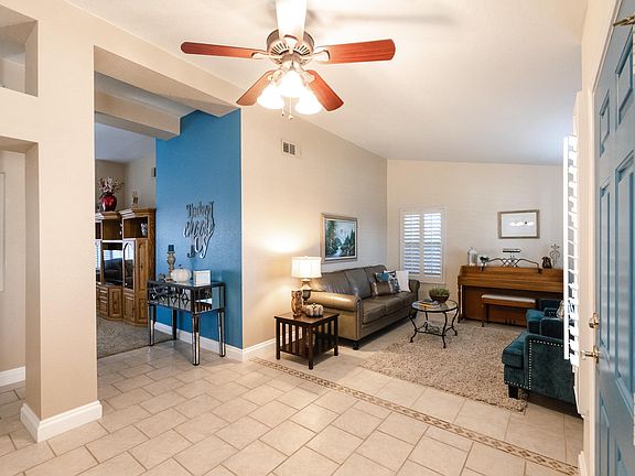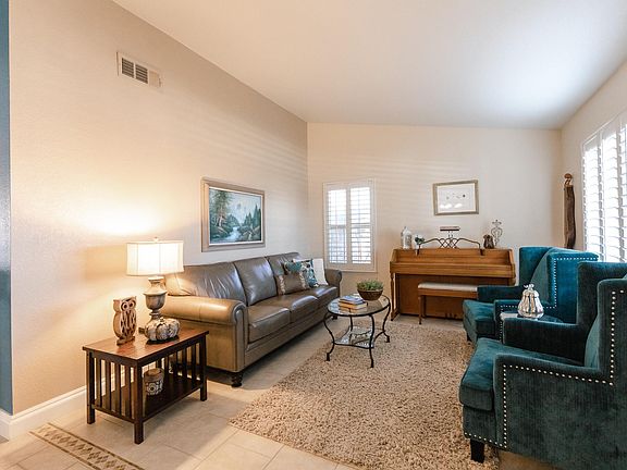 This beautiful 4 bedroom 2 bathroom single level home is in the Ventana Ranch community and on a large, corner lot, making it ideal for parking. When arriving, you'll be greeted by a well-manicured lawn and landscape as well as two mature trees that provide great shade during the day. Upon entry into the home, you'll be greeted by an open dining area and living room. Updates and upgrades are evident all throughout this bright home! Recent updates include newer paint, an updated kitchen with quartz stone countertops, stainless steel appliances and sink, as well as newer, custom cabinetry with soft-closed features, and air conditioning unit. The home also boasts tile floors, updated carpets, high ceilings, plantation shutters, and a recently re-plastered stunning sparkling pool, ideal for entertaining year-round. Applications must be approved prior to scheduling a tour of the home.