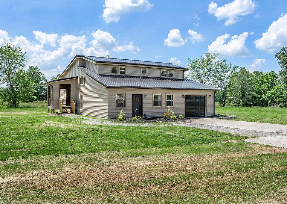 This home has had several updates. The updates include the kitchen, primary bath, first floor full bath, LVP flooring, wood burning fireplace (2021), metal roof (2023), vinyl siding (2023), gutters (2024), new garage door (2024), new side entry porches (2024), new downspouts with extensions (2024). This is a wonderful home that has usable space inside, and out with it's 3 acres and no HOA.