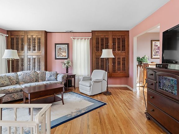 cherry cabinets kitchen w/ breakfast island opens to the dining area which leads to a beautiful 4 SEASON room with lots of natural light.Step out from here to your lovely partially fenced yard with a patio area and lovely landscaping. Gleaming hardwood floors throughout the first floor. The lower level family room is perfect for entertaining and a hearth for a wood/pellet stove is all ready for hookup (capped & chimney ready).There's a full bath and spacious laundry room on this level and a 8x9 walk-in closet for even more storage! Central Air replaced 2015, Boiler replaced 2022.Replacement windows, 40 year architectural shingle roof replaced approx 2006. All this and walking distance to the park! You will love this home! Come take a look!