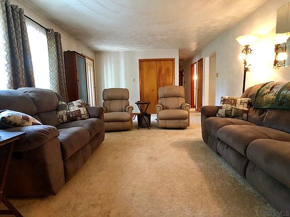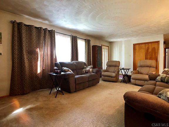 Sprawling Ranch on wooded lot in West Taylor Township. Spacious living room with w/w carpeting, closet & panelled accent wall. Dining room open to kitchen w/ white cabinets, solid oak floors, includes appliances & gives access to sun room. 3 nice sized carpeted bedrooms w/ closets. Updated full bath with tub/shower, vanity & toilet. Master Bedroom bath w/ shower, vanity & toilet. Full partially finished basement laundry hook-ups. Attached 2 car garage. Shed. Beautiful views. Ask about a home warranty. Call today to schedule a tour!