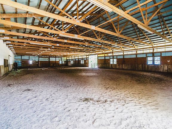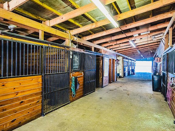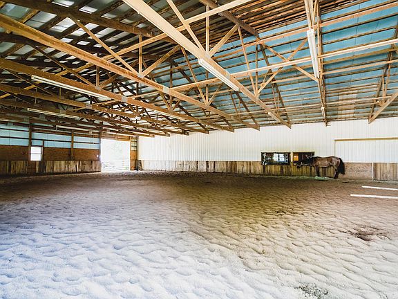 Working Equine Ranch with Home! This property consists of 43.27 acres m/l with perfect LOCATION! SHOW BARN - 125x108 Totally Enclosed includes 125x60 Indoor Riding Arena, 16 12x12 Horse Stalls, 12x12 Wash Rack, Arena View Room, 12x24 Climate Controlled Tack/Storage Room, Bathroom, Feed Room, outdoor Hardy wood furnace, propane heaters, exhaust fan. LOWER BARN - 120x30 plus 16x40 lean-to shed, 6 10x20 stalls with room to expand, rubber mats, waterers, 3 outdoor paddocks. OUTDOOR RIDING ARENA - 150x150, lighted. Property also includes Bi-Directional horse walker, Dog Run, Fenced & Cross Fenced, multiple paddocks, multiple run-in shelters, Bermuda pasture, fruit trees, berries. The home is a 4 bedroom, 3 bath with great master suite, finished basement, above ground pool with deck & MORE!