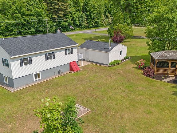 Welcome to 911 County Route 10 — a charming and well-maintained 3-bedroom ranch set on over 5 beautiful acres in a peaceful country setting. The main level features two comfortable bedrooms, a newly remodeled full bathroom, and an additional bonus room perfect for a home office, craft space, or extra storage. The bright and inviting lower level offers a spacious third bedroom and plenty of room to expand your living area, create a home gym, or set up a recreation room to suit your needs. Recent updates include a new roof in 2022, and a stylish composite front deck added in 2023. This offers a great spot to relax and take in the views. Outside, the property continues to impress with a detached two-car garage, an additional one-car garage, a charming gazebo surrounded by meticulously maintained landscaping, and a large 40x40 pad already equipped with electric and cable—ideal for a future shop, outbuilding, or camper setup. If you're looking for space, privacy, and a move-in ready home with room to grow both inside and out, this one is not to be missed! SELLER HAS ASKED THAT ALL OFFERS BE DUE SATURDAY 6/14 BY 6:00 PM.