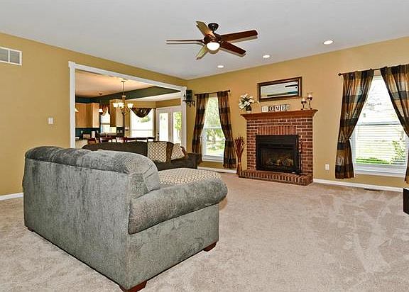 Winghaven, Wentzville Schools! Beautiful 1.5 Story Home with more than 3000 sf of living space; Hardwood flooring in the entry foyer lead you to the charming dining room (currently used as LR) with wainscoting. Enjoy the spacious Great Room with gas fireplace with wood mantle and brick hearth/surround. The beautifully updated kitchen features granite countertops, center island w/breakfast bar, SS appliances including smoothtop range/double oven; Breakfast room opens to aggregate patio w/ corner firepit; Main Floor Master Suite; The gorgeous redesigned/updated bath and walk-in closet is highlighted by stunning tile floor/surround, double vanity/ oversized walk-in shower; The upper level offers 3 spacious bedrooms all with walk-in closets and a 19x19 bonus roomperfect for a family room, kids play area or a home office! Additional highlights include 2-inch blinds, updated lighting, updated powder room, sprinkler system, home protection plan; Winghaven amenities: walking trails & parks