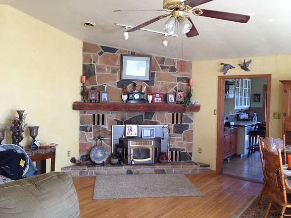 home on 1.87 acres. Features 2-car GAR, LR w/ cathedral ceilings, hdwd flrs, stone FP w/ pellet stove, deck, 15x30 above-ground pool, 12x28 shed, LL Rec Rm w/ wood stove. Mature producing fruit trees and nut trees on the property.