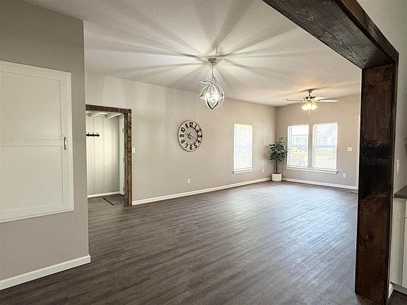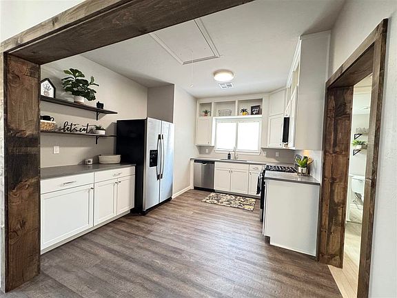 Absolutely Charming Fully Renovated Bungalow! Prepare to fall in love with this beautifully updated 3 Bed/1 Bath home with an attached 1-car garage! No detail was overlooked in this total renovation! Step into a spacious open-concept living, dining, and kitchen area filled with natural light and designer touches throughout! Every system in the home is brand new—from the HVAC to windows, plumbing, electrical, and insulation. Freshly textured and painted walls, modern lighting, and ceiling fans elevate the interior! The gourmet kitchen is a showstopper with all-new stainless steel appliances—including a gas range—quartz countertops, sleek open shelving, an under-mount stainless steel sink, and a high-end designer faucet! The luxurious vinyl plank flooring throughout the main areas pairs perfectly with plush new carpeting in the bedrooms! The bathroom features a fully tiled tub/shower surround and a stunning designer vanity! Outside, the curb appeal is second to none with all-new siding, fresh paint, a Heritage shingle roof, and metal-roofed porch and patio accents! Enjoy summer evenings on the brand-new covered front porch deck or entertain in the fenced backyard that backs directly to a beautiful city park—perfect for families and outdoor fun! Extras include a spacious laundry/mudroom, new sidewalks, and an attached garage with new garage door! This home blends timeless charm with modern style and comfort! You truly have to see it to believe it! Don’t miss your chance to own this incredible property!