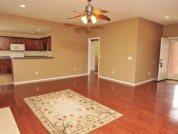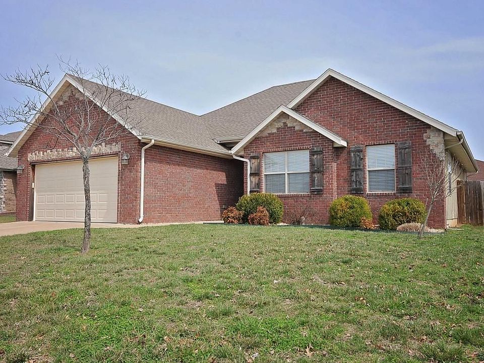 Welcome home! As you drive toward the back of the subdivision you will find this pretty double gable front ranch. Interiors do not disappoint with a wide, open floor plan. No issues with furniture placement in this generous living room, hard surface flooring throughout the open areas! Plenty of counter-top space in the kitchen as well. Unique split floor plan with a windowpane door separating the 2 extra bedrooms and bath, perfect for guests or naps. Master is on it's own and features a giant master bedroom closet, large bath with 2 sinks and a jetted tub, and a door out to the covered porch. Rear yard is privacy fenced and is having some reseeding and straw for your nice summer yard.