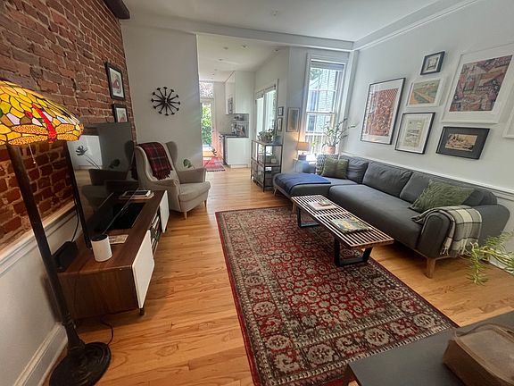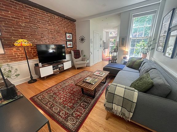 Quintessential Capitol Hill Charmer - great location on a gorgeous street! Thoughtfully renovated bright and airy 2 bedroom 1.5 bath rowhouse with a modern kitchen. Glass panel doors and skylights flood the house with south light and connect to a sizable treed backyard. Direct access from a broad alley to a brick-paved secure off street parking space in the back. New High Velocity AC System, Japanese toilet, and lots of exposed brick. New washer dryer. Pet-friendly. Plenty of storage with large wardrobes and a shed in the backyard. Offered partially furnished or unfurnished. Located on a quiet block of historic Capitol Hill, one block from Barracks Row lined with top restaurants, coffee shops, bars, and close to Eastern Market and Trader Joe's. Less than 1 mile to the US Capitol, Library of Congress, Supreme Court, the Mall, Eastern Market Metro. Tenant pays for all utilities (water, gas, electric, cable/internet). Tenant responsible for yard. Pets ok but subject to owner discretion for large dogs. No smoking inside the house.