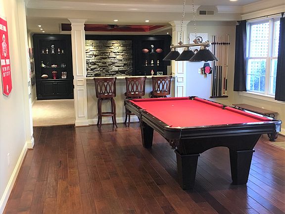 Updated 5 bedroom home with finished bsmt on premium Cary Park lot. Hardwoods throughout most of 1st flr. Spacious formals. 2 story family rm. Bright & open eat-in kitchen has granite tops, center island & tile b-splash. 1st flr office. Large master suite includes his & hers WIC's, garden tub w/ sep shower. Amazing bsmt has rec room area with gas log fp, bar/kitchen area w/ granite tops, media room + full bath. Unf storage area. Plumbed W/U attic. Screen porch offers wonderful wooded views! Pool community