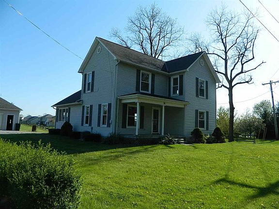 If you are looking for a Farmhouse - Here is it! And it's in NWAC Schools system! And there's a covered front porch to enjoy the coming summer evenings! Updated in the past few years: HVAC (Gas Forced Air, Trane Furnace), Windows, Vinyl Siding, Garage Door and Roof, too. Interior Needs some Work but has 4 Bedrooms and the full Bath is on the Main Floor. On City Sewer with a Well. Detached, oversized 1-car garage with opener. A New survey has been completed and the home is located on slightly under a Half Acre (.456) Home is being sold "as is" and is in an estate. Ceiling Fans. Refrigerator and Range are staying. There is attic access off the upstairs bedroom for easy storage!