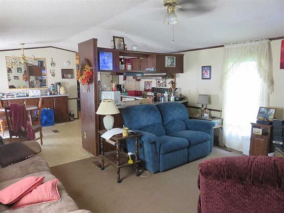 Mobile home with addition on .75 acres. Features 2 bedrooms, 2 baths, living room, kitchen, family room, covered porch, storage building, & small barn. Only $47,000.