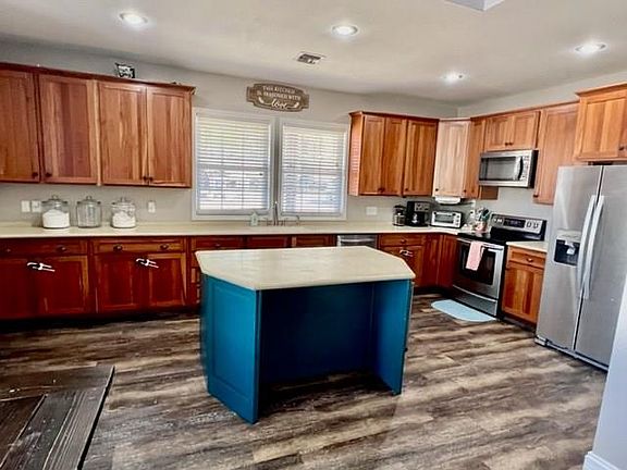 4 bedroom, 2 bath on 2.19 acres more or less located on paved road and has high speed internet from COX. 1200 sq. ft. of patio with partial under roof expands your living space to the outdoors. Room to grill or chill out. Plenty of outdoor space with 2.19 acres to add that pool you have been wanting. Owners retreat is spacious with 13ft vaulted ceilings, walk-in closet ,huge bath with Jacuzzi tub ,double sinks, vanity area walk in shower and your own private covered patio. One spare bedroom has room for a king size and full size bed. 9 ft ceilings in kitchen and bedrooms, living room is vaulted ceiling to 15ft.and dining room has 13ft ceilings. Kitchen is spacious with lots of solid surface counter tops, center island, Natural light from the dining area window makes this kitchen one you will want to hang out in. 2 car attached garage and detached 20 x 16 shop. One year Home Warranty