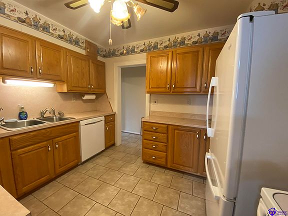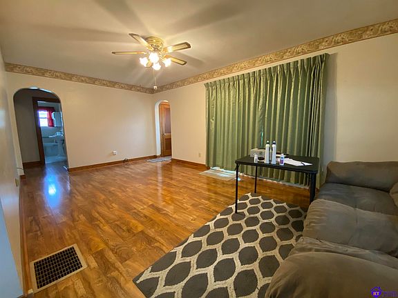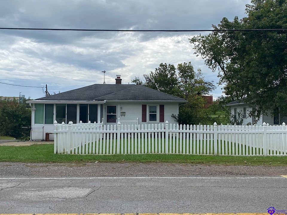 This charming house within the Brandenburg city limits has three large bedrooms, two full bathrooms, arched passageways, and plenty of storage space. The kitchen has an abundance of cabinets and counters. Not included in the 1224 square feet of this house are two enclosed porches, both lined with windows on all sides, totaling 294 square feet. The stair railing, porch railing, and fence are all maintenance free vinyl.