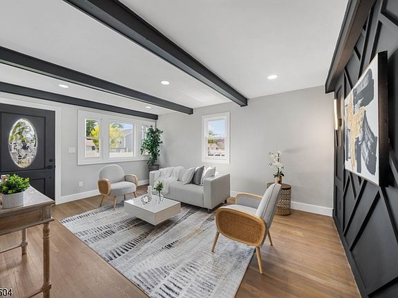 Welcome to this beautifully renovated home offering 5 spacious bedrooms and 2 full bathrooms. Recently updated with modern finishes, this residence blends style and comfort throughout. The bright living room features striking ceiling beams and accent walls, while the kitchen offers stainless steel appliances, and plenty of cabinet space. The home also includes a designer-like bathrooms with elegant tile work. A long private driveway provides ample parking. Move-in ready and conveniently located near Linden train station, schools, shopping, and transportation, this property is a must-see!