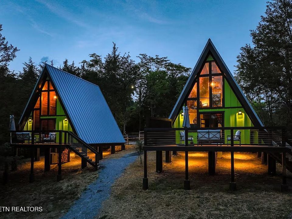 WOW FACTOR! TWO, INCOME GENERATING ONE BEDROOM A FRAME MODERN CABINS EACH CABIN IS 850 SQ.FT. BEING SOLD TURNKEY AND FULLY FURNISHED WITH OUTDOOR FIREPITS BEING SOLD TOGETHER THAT SIT ON 1 ACRE IN OASIS RETREAT! FEATURING SOLID RENTAL HISTORY AND 5 STAR REVIEWS ON AIRBNB! GROSS INCOME BEING RENTED ON ONLY ONE PLATFORM WAS $115,089 WITH PROJECTIONS ONCE ON ALL PLATFORMS OF $130K! This incredible property offers a unique blend of eco-friendly design and luxury amenities, making it an exceptional investment opportunity. Enjoy the exclusive features this resort offers, including: A stocked lake perfect for fishing, along with docks, kayaking, and paddle boating. Nature trails for leisurely walks and outdoor fire pits at each cabin. A playground for children and EV chargers at every unit for convenience. Each cabin is thoughtfully designed with luxury in mind, offering: Luxury vinyl plank flooring throughout. Walk-in tiled showers in the bathrooms. Sleek granite countertops in the fully equipped kitchen. A cozy dining area and living room with a sleeper sofa. A private bedroom for comfort and relaxation, and many outdoor entertainment options, including a private deck with seating and an outdoor fire pit. The location is ideal, offering the perfect balance of privacy and serenity, yet just minutes away from the popular attractions, dining, and shopping of Pigeon Forge. Easy access location with no steep roads yet a private wooded and serene setting with plenty of parking. This is a must-see property that promises endless potential for growth and relaxation. Maximize your ROI by investing in the Smoky Mountains with this already income generating opportunity. *Additional units grouped together may be purchased ask for details. **Check out the video!! Must see! **Also, available for sale are cabins 1 and 2 if you'd like to own 4 short term rental cabins all next to each other see MLS #308268