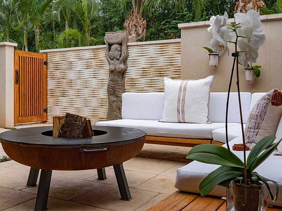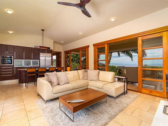 Peace and tranquility in todayâs chaotic world is priceless. This Balinese inspired Launiupoko 2 bedroom, 2 and 1/2 bathroom home with neighbor island views and an open design featuring glass, wood, stone and vaulted ceilings embodies tranquility. Enter through a large private courtyard with soothing water features, Balinese sculpture, and landscaping. Enter the great roomâs French doors. Look through to an expansive ocean view. The large lanai is your covered open air dining room. The gourmet kitchen has German designed cabinets, thick chocolate counter tops and stainless steel appliances. The kitchen flows into the indoor living area featuring Bali style touches and carved doors over Travertine floors. The perfect master bedroom is positioned to view the ocean across your pool. The seating area is perfect for reading. One door accesses the lanai and pool; a second leads you to a private lanai. The master bathroom is spa-like, featuring twin stone vessel sinks and stone tile. The oversized shower has a unique glass tile and glass enclosure. A teak bordered glass door leads you to a large Zen-like garden area where you can relax in a grand stone tub and gaze at the ocean. Comes furnished. The second master also captures the ocean view. The en suite bathroom is tastefully decorated with Bali carvings and tile and features a very private outdoor shower. Furnishings included.
