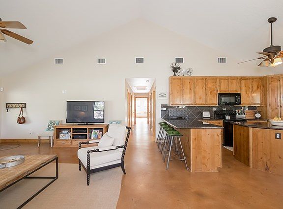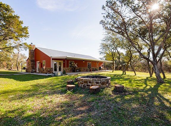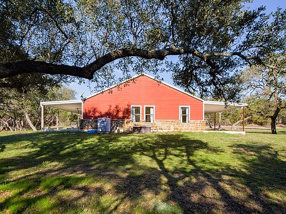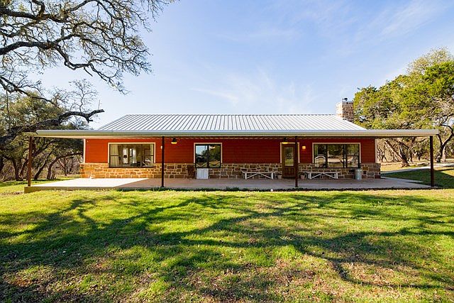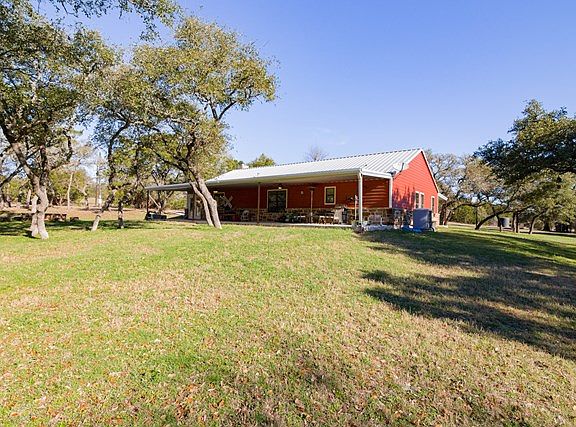 Great Charm with this country home on 5 acres~Covered Porches front and back~OAKS~Walk to Blanco State Park & 5 Minutes to Blanco Town Square! Metal Roof, Stone & Fiber Cement Board Exterior with Rock Trim~Large Open Living/Kitchen with Electric Range, Granite Island & Counters~~ Beautiful Stone Fireplace~~High Ceilings~Stained Concrete Floors~Oversized Master with Walk-in Closet~Master Bath Large with Walk-in Shower~Separate Bathtub, Granite Counters! Area for Carport/Garage ready.