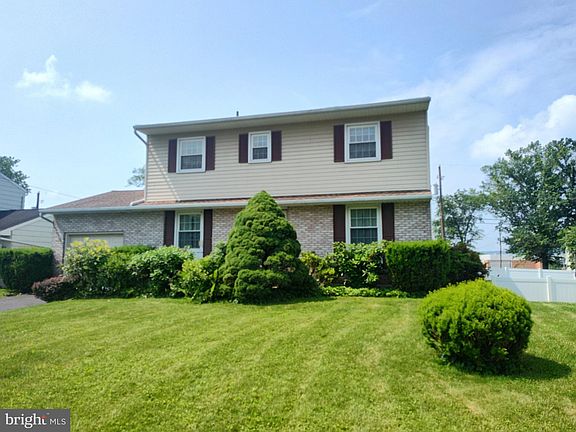 Located in a neighborhood setting, this charming center hall offers a wonderful opportunity to add your personal touches. With 4 bedrooms, 2.5 baths, and a partial brick front façade, this home combines solid construction with great potential for updates. The main level features a welcoming foyer, a formal dining room just off the eat-in kitchen with ample cabinet and countertop space, and a spacious living room ideal for gatherings. Most rooms feature hardwood flooring under the carpeting, ready to be revealed. Upstairs, the primary bedroom includes a private bath with a stall shower, while three additional bedrooms offer generous closet space and share a full hall bath with a soaking tub/shower surround. The finished walkout basement provides flexible space for a family room, home office, or play area. The basement exits at ground level to a covered rear patio that opens to a private backyard, perfect for outdoor relaxation, entertaining, or gardening. Additional highlights include vinyl replacement windows throughout and a practical floorplan. This presents a fantastic opportunity for buyers looking to customize and create lasting value in a well-established location
