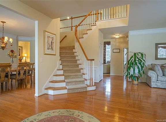 Beautiful 5 bedroom home featuring guest bedroom suite on the main level and 4 bedrooms on the upper level including an oversized Master bedroom with sitting area. Great open floor plan loaded with upgrades! Hardwoods throughout main, kitchen w/upgraded cabinets, corian countertops & island! Home has a level yard with trees for extra privacy in the rear. Great location to great schools and shopping minutes away to Blakeney, Waverly and Stonecrest shopping centers and restaurants. Don't miss out on this one with Marvin Schools!