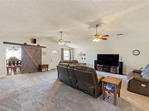 Escape to country living! One-story home Situated on 1 acre with no restrictions or HOA. This home features brand new carpet, laminate in laundry room, and vinyl plank in entry. Upgrades also include stainless steel appliances, new paint and fencing. Dining room has new sliding barn door and can be a good flex space for office if needed. Close to 130 Toll and formula one track.
