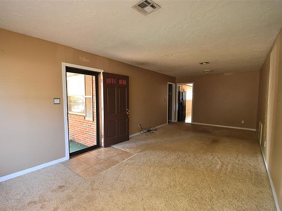 Backyard deckCovered front porchBrick homeStack stone fireplaceCrisp white cabinetsAccess to the backyardNatural light