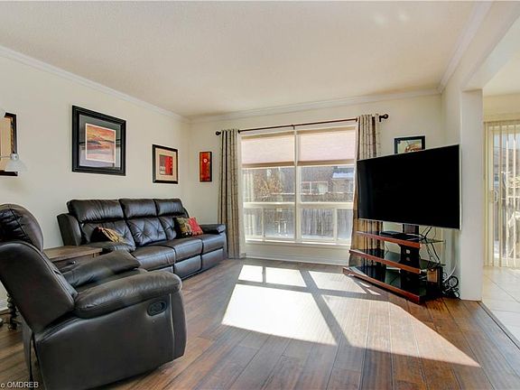Trendy Mattamy "Lakepoint" model on a quiet, family friendly street in Beaty. This fully finished and updated home features a great layout for living and entertaining. Eat-in kitchen has stainless steel appliances, tile backsplash and walks out to yard with spacious patio and concrete walkway. Upstairs you'll find 3 good sized bedrooms, including master with walk-in closet and 4pc ensuite. Finished basement offers an additional room which could be used as a bedroom or rec room, 3pc bath and finished laundry area with sink. Previous owner used basement as separate rental suite, potential exists to convert it back. Newer furnace (2015), engineered laminate floors (2019) and appliances (2014). No sidewalk and 10/10 location on an excellent street just steps from park, shopping and schools. Minutes to GO, 401 and 407.