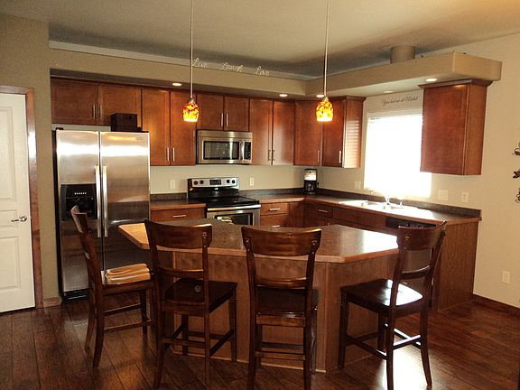 Sellers are motivated! Fabulous views to the South! Newer 4 bedroom/3 bathroom split entry home located in Horizon Heights. Features include maple cabinets, center island, stainless steel appliances, laminate flooring, and master suite with dual sinks. The daylight family room is spacious and has a fireplace, 92" projection system, and extra space for a pool table. Access the 14 x 20 deck from the sliding patio doors. The 3 stall garage is insulated, heated, has floor drain, epoxy finished floor, and hot/cold water. Call to arrange to view this home!