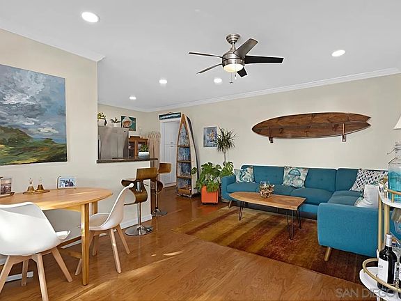 Your chance to live in one of the most desirable beach communities in San Diego - North Pacific Beach! Fully furnished, this beauty sits two blocks away from one of the most beautiful beaches in San Diego. All services, stores, cafes, restaurants and bars are within easy walking distance. Only seven other neighbors for this updated top floor one-bedroom with a patio under a big pine tree - enjoy the ocean breezes, ample views and dreamy sunsets. Stainless steel appliances, granite countertops, hardwood floors, dual pane windows and exquisite decor so you stay a month or a year, your choice! Contact us before this beauty is gone!!