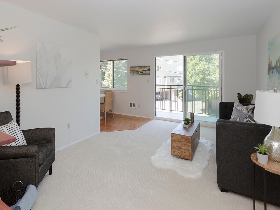 Experience all that makes Green Lake the best park in Seattle as you will be just 1 block away! This warm and inviting condo offers a spacious bedroom, private balcony, hardwood floors, and plush carpet. A Walk Core Score of 89 means you are just a quick walk away from grocery stores (PCC Natural Market, Ken's Market, Phinney Farmer's Market), Starbucks, bars (Uber Tavern, St. Andrews), restaurants (Pete's Eggnest, Wing Dome, Hangry Panda, ), and so much more! Conveniently located by I-5 and just a block away from Aurora Ave/99, and a 13-minute drive to downtown by car and 20 minutes to downtown by the RapidRide E line bus (the closest station is 1 block away). Water/Sewer/Garbage is $25/month per person and is paid in addition to rent; tenant is responsible for Seattle City Light (averages $25/month). One off-street reserved parking spot is available for $50/month. A dedicated storage unit is included in the rent. Bike storage room (Bike Score of 87!) on-site card-operated laundry and game room are also included. This is a secure building with an elevator. Dogs under 35 pounds and cats are allowed for a monthly fee of $25. First and last months rent due at signing, in addition to a $300 move-in fee. $400 refundable deposit required (last months rent, move-in fee and refundable deposit will be spread across initial 6 months of lease). Utilities (Water/Sewer/Garbage) an additional $25 per person; one off-street reserved parking spot available for $50/month. Bike room and storage unit are included in rent. Tenant only responsible for Seattle City Light bill (averages $25/month). 12-month lease required, although shorter terms are negotiable. Dogs (most breeds) under 35 pounds and cats are allowed with a monthly fee of $25/month.