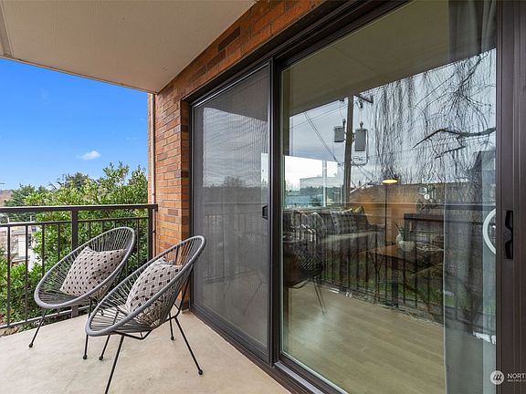 Welcome home to this spacious and bright 2-bedroom, 1-bath corner unit Green Lake condo!  Offering one level living w/ the perfect blend of mid-century charm & modern convenience. Big windows giving natural light in all rooms, meticulously maintained & perfectly situated just a few minutes walk to Green Lake. Easy access to transit, Downtown, and walkable to Phinney Ridge cafes, bars and restaurants.  Open floor plan extends to large balcony. Freshly painted w/new lighting throughout. In the last 2 yrs, new fridge, microwave, dishwasher & range in kitchen & new tile in bath. Thoughtfully designed 2nd bdrm w/Murphy bed that stays, custom cabinetry & built-in desk. Parking and bike storage. Don't miss your opportunity to call this place home!