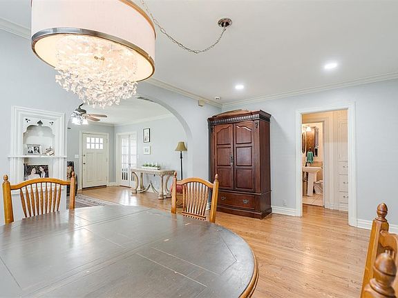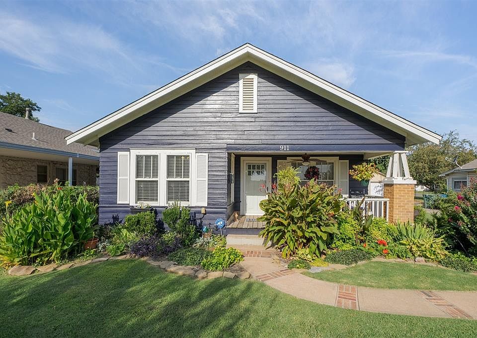 Just REDUCED! This delightful and picturesque residence nestled in the heart of Edmond is now awaiting a new homeowner! Step into the entrance and you'll be welcomed by the warmth of hardwood floors, gracefully arched passageways, elegant crown molding, an abundance of natural light and original crystal door knobs. The kitchen boasts bespoke cabinets, a charming black and white tiled motif, modern stainless steel appliances, and even a ceiling fan to keep things cool during those sizzling cooking sessions. The generously sized laundry room provides ample cabinet storage and invites in more refreshing natural light. With three bedrooms, one bath, and additional storage space adjacent to the hallway bath, there's no shortage of practicality. The landscaping is flawlessly maintained, creating an exquisite outdoor space. A welcoming front porch offers an ideal spot for your morning coffee rituals or to unwind while basking in the glow of evening sunsets. This area easily accommodates multiple chairs and comes complete with an outdoor ceiling fan—an absolute necessity during the warm Oklahoma summers. Plus, there is a detached 2 car garage with shelving storage and out door patio space behind the garages. Some updates include paint, some electrical updates including outlets, led can lights, outside AC unit in 2023, fence, refinished wood floors in 2023, & refinished tub in 2023. Come see the adorable home within walking distance to downtown Edmond!