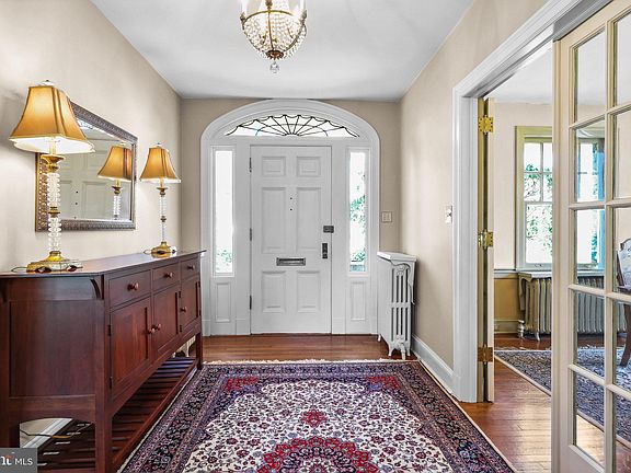 Welcome to this exquisite historic treasure nestled on a lush 1.1 acre lot. This special home was built in 1905 and is impeccably updated with today's modern amenities while maintaining timeless elegance and charm. The quality craftsmanship is evident throughout the home highlighted in the hardwood floors and complemented by plaster walls and intricate architectural details. The focal point of the gracious front entry foyer is the softly curved staircase with a wrought iron railing. To the right, French doors open into the expansive living room featuring a handsome stone fireplace, built-in bookcases, and French doors leading to a side sunroom. To the left, French doors lead to the spacious dining room that is filled with an abundance of natural light through the large windows with deep window sills. The kitchen is a chef's delight, with an exposed brick wall, glass upper cabinets, a granite center island with a prep sink, butcher block counters, and high-end appliances including a Viking range and a Subzero refrigerator. There is a large bay window in the eat-in area and a side door for convenient access to the grill deck. A butler’s pantry offers extensive storage and access to the powder room. Just off the kitchen is the side entry foyer that welcomes you with a tray ceiling, a large walk-in closet and columns delineating the adjoining kitchen and family rooms. Step into the inviting family room addition, featuring a tray ceiling and a floor-to-ceiling stone wood burning fireplace. The family room is seamlessly connected by two sets of French doors to an outdoor Pennsylvania bluestone patio which cascades to a second brick patio adorned with a pond water feature and evergreen gardens, creating a serene outdoor oasis. Upstairs, the second level offers two wings. The front wing includes three bedrooms, two currently being utilized as offices. There is also a full bathroom containing a marble vanity and backsplash as well as a jetted tub/shower. The expansive back wing provides additional living space including a bonus sitting room, a walk in hall closet, a large laundry room, an updated full bathroom with tile shower and glass door, plus two additional bedrooms, each with French doors connecting to a large sun porch overlooking the rear gardens. The third level is dedicated to the master suite with a large walk-in closet, a bathroom with a jetted soaking tub, a marble shower with glass door, and a dual sink marble vanity, as well as easy access to a large walk-in attic for additional storage. The home also has a full unfinished basement for mechanical equipment and storage. Finally, the oversized two car garage offers an attached 18x11 workshop for DIY projects, plus a large attic area for still more storage. This home combines luxurious living with historic charm, creating an unparalleled living experience. Close proximity to the historic canal path, shopping, trains and major roadways. Pennsbury School District.