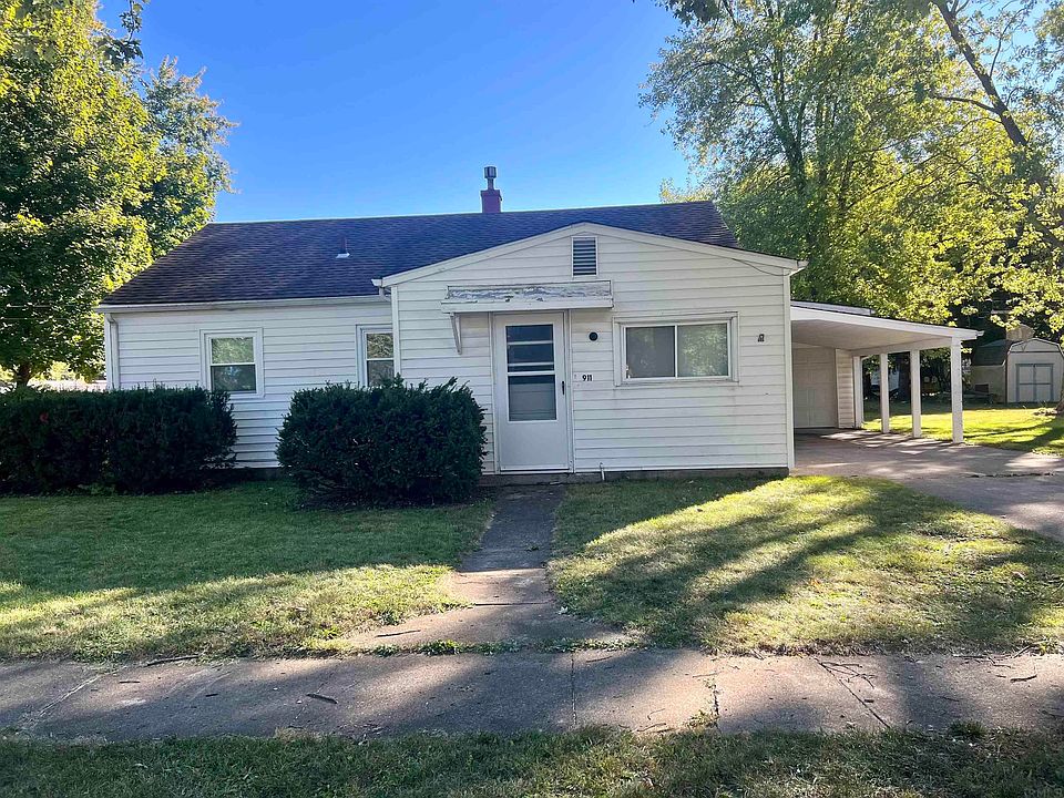 Great neighborhood and almost 1/2 acre yard! This affordable 2 bedroom, 1 bathroom home offers large rooms and 1300+ square feet plus a very spacious garage and carport. Nice vinyl siding and replacement windows plus updated furnace and central air for original part of home. An added family room has it's own furnace and a partial basement for more storage. A new stand up shower and vanity have been added in the bathroom this year. The heated laundry room is off of the garage as well as a mud room. The front and rear of the home have enclosed porch areas. A 10' x 10' shed with concrete floor is included. Home is being sold As-Is in an estate.