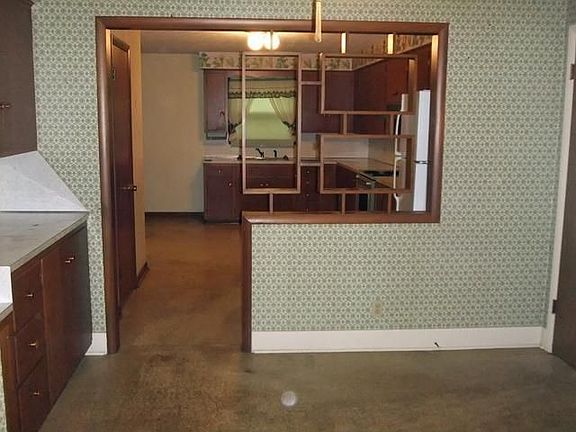 2 bedrooms, large kitchen, large utility room with utility sink, washer & dryer and lots of cabinets and countertop space. It has 1 1/2 baths with the 1/2 bath off the master bedroom. Wonderful front covered front porch. The lot is L-shaped. The garage holds 2 cars end to end. Fenced back yard. This home is being sold as is, but is priced right.