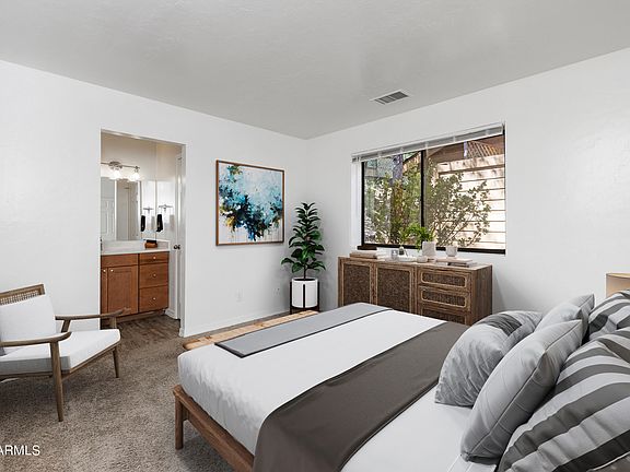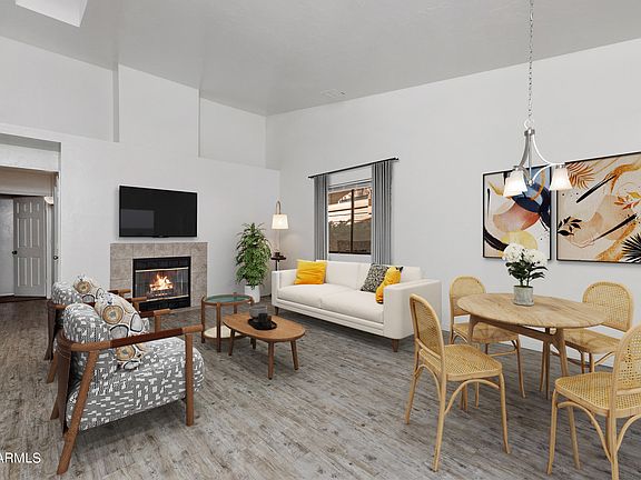 Move-in ready Forest Hylands condo just two miles from historic downtown Prescott's shops, restaurants and events. Open concept living with luxury vinyl flooring, updated subway tile and lighting in both baths, wood fireplace in living area, neutral paint throughout. Primary with ensuite bath, second bedroom, full bath and laundry room. Private front deck for enjoying the cool, mountain air. One car garage. HOA dues cover building insurance, roof and painting. 30 day minimum rental. New 50-gallon Rheem gas hot water heater 10/22, new gas furnace and A/C unit 11/22. Close to Courthouse Square, public and charter schools, Yavapai College, Dignity Health.
