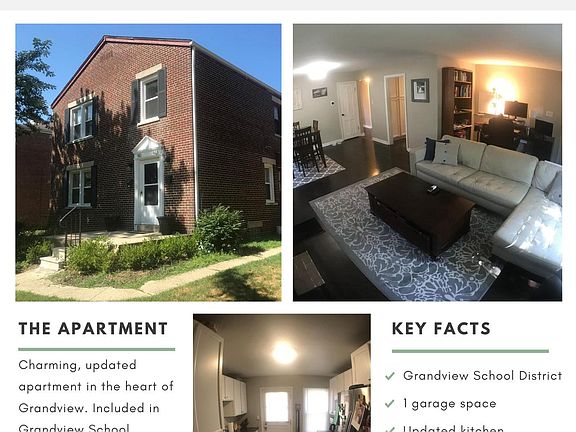 Charming Grandview Duplex Unit! * Grandview School District! * 1,190 sqft, 2 bedrooms, 1 bathroom * 1st floor unit with private entrance * open living/dining area * renovated kitchen, stainless appliances * unit specific washer/dryer in basement * large shared storage area in basement * 1 garage space included * small pets negotiable, additional fee * tenant responsible for utilities * $1,500 /month