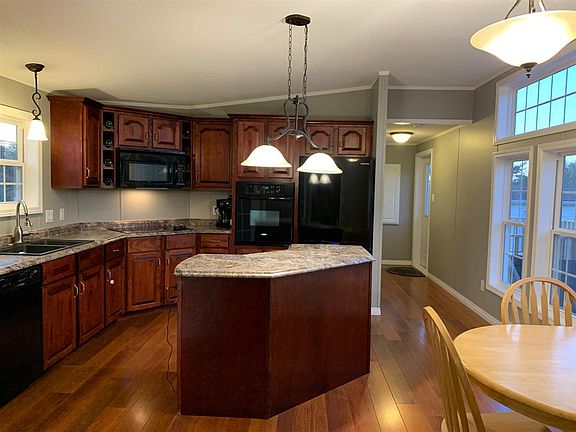 You have to check out this 10 year young mini home, its on it's own land and it has a detached garage! When you enter this beautiful home you will be greeted with floor to ceiling windows and a gorgeous eat in kitchen featuring cherry cabinets, there is a large living room which leads you to the spacious master bedroom with its own ensuite with a air soaker tub for two! Located on the other end of the home, offering you a private master bedroom are two other bedrooms, a main bathroom and laundry area. The home has been freshly painted, there is laminate flooring throughout and has a ductless heat pump for efficient heating this upcoming winter and will keep you cool next summer. New Septic is being installed.