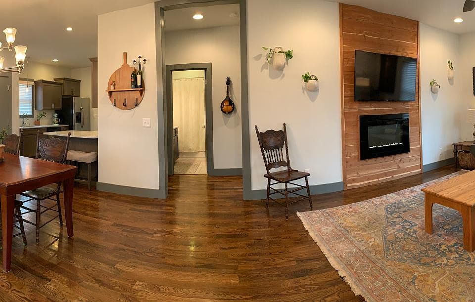 Modern East Nashville home just minutes from downtown, 5 Points, and Shelby Park! Open floor plan with hardwoods throughout. Large primary suite with private deck and walk-in closet. Primary bathroom includes dual sinks and a large walk-in shower. Kitchen equipped with quartz countertops and stainless steel appliances. Large fenced in backyard with a huge deck equipped for entertaining (Patio furniture included). Three car driveway for plenty of off street parking. Two story front porch with beautiful views of the downtown skyline. **Water and Gas utilities included in rent** **Lawn Care included in rent** Tenant pays Electrical. $50 application fee. Murphy bed, grill and flatscreen TV optional furnishings.