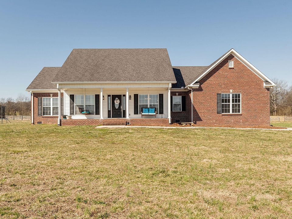 All Brick home sitting on 9.66 Acres-All Sand and finish Hardwood Floors- Granite Kitchen counter tops- Open living floor plan- Stone to ceiling fireplace -New HVAC-All pool supplies stay- Outbuilding