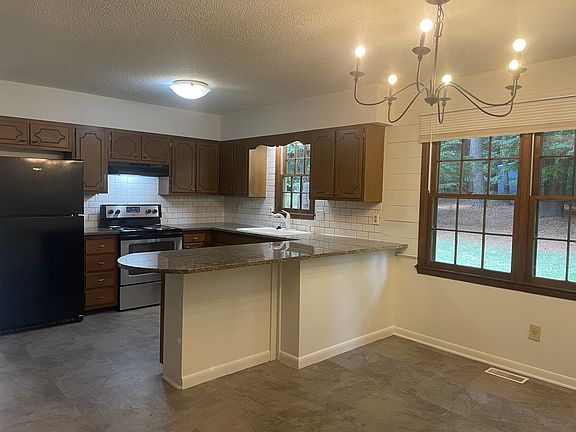 Upgraded 4 bedroom, 2 bath home with large front and back yard providing privacy in the heart of a downtown Wake Forest neighborhood. Beautiful Wooden Floors, INTERIOR FRESHLY PAINTED, BRAND NEW FRIDGE, SELF CLEAN RANGE, GRANITE COUNTER TOPS, MANY NEW LIGHT FIXTURES, LAUNDRY HOOK UPS and a nice sized Island in the Kitchen are a few of the nice things this home offers. This home has many updates.The large yard with many trees adds privacy for you. The Attached Long Carport has a nice outdoor storage room connected to it. Bushes will be trimmed for you and triple shredded bark will be laid in the beds once a year. Welcome to 911 South Wingate Street! The tenant is responsible for utilities and lawn mowing. We are responsible for bush pruning twice a year and installing bark once a year. Smoking is prohibited inside the property and allowing pets may be discussed. The property has undergone renovations, including the replacement of fixtures, professionally painted interior and exterior (excluding brick areas), outdoor light post and light fixtures, refrigerator, and self-cleaning range.