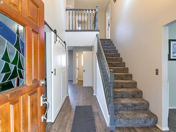 Do you remember the Brady Bunch?? Are you looking for a home that has tons of bedrooms and extra living spaces? This one-of-a-kind three-level home with expansive valley views spans 2808 square feet, not including the huge finished storage area! With 4 bedrooms, 3 and a half bathrooms, and a three-car heated garage, the main level entry welcomes you with a stylish sliding barn door and beautiful engineered floors. The formal dining room is characterized by its warm remote-controlled gas fireplace and its double French doors leading to the first level of the covered two-story deck. Brand new carpeting leads you upstairs to the primary suite with two additional bedrooms and a full bath or head to the lower level to warm up by the second gas fireplace (stove) and enjoy a movie on your new wide-screen projector. The rest of the lower level includes additional bedroom opportunities and the massive finished storage area we promised you. This is a perfect place for your hobbies, gatherings, and making memories with friends and family.