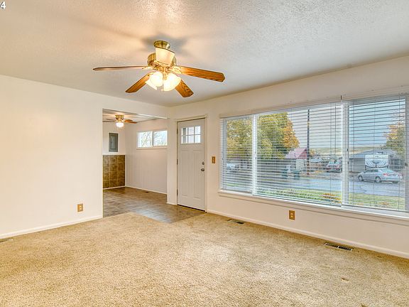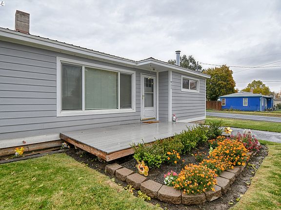 Cuteness Overload finds this well-maintained 3 bedroom, 1 bath home - set on a corner lot in the quaint community of Pilot Rock. A Newer Furnace, Newer AC, Metal Roof, Updated Windows and Doors provide quality infrastructure. Appreciate the additional space which can be used as a home office, den or play area. A darling kitchen complete with robin egg blue trim includes the refrigerator and stove. From the dining area step out the brand new slider door to a wall to wall covered porch. Love the living room picture window providing scenic views and an updated bathroom, along with modern lighting and window blinds. Outside you find a well kept fenced yard with a large garden shed and RV Parking. Location! Sharp! Value!
