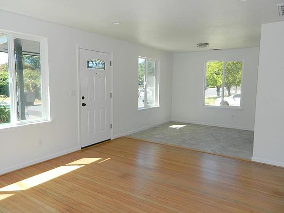 Totally renovated from the Bottom up. Cute Cute Cute. Built ln 1948 this 2 bdrm 1 bath 844 sqft is move in ready. Large living room with real wood floors, New kitchen cabinets, counter tops and appliances. Sunny dining room. 2 large bedrooms with updated floor coverings. Laundry room too. Bathroom updated with all new fixtures. New paint, New vinyl windows. New Heat pump, new sewer line, plus the house has been re-plumbed. Double car garage. Large lot .17 acre. Don't miss out on this Classic Mid Century Home. Apple, Pear Fig trees