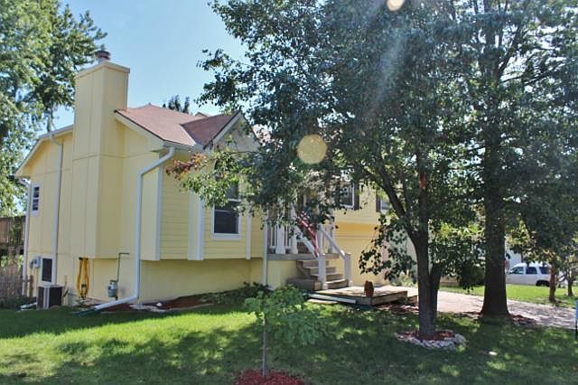 Lovely well maintained side to side split in Grain Valley with 3 full bathrooms! Recently painted exterior. Roof replaced in 2011. Beautiful, fenced yard with wonderful shade trees and garden area. Deck of kitchen with covered patio off walk out basement. Extra patio ready for storage shed or additional sitting area. Basement finished as either a family room or 4th bedroom with full bath and walk in closet/storage. Home is a short sale and is subject to final lender approval. Price is current appraised value. All kitchen appliances stay with the property including the fridge. Home needs new carpet and price reflects this. Great neighborhood with sidewalks. Excellent school district.