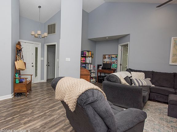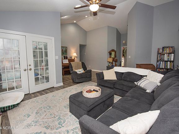 Experience coastal living on a private, peaceful cul-de-sac in beautiful Fairfield Harbour. This charming ranch home offers an open and airy feel with cathedral ceilings and skylights. The heart of this split floor plan home is the inviting living room. The kitchen and dining room combo is perfect for family gatherings, featuring ample counter space, extra cabinetry, and a pantry. Both spare bedrooms are generously sized with large closets for plenty of storage. The master suite, located just off the living room, includes a walk-in closet, an en-suite bathroom, and sliding door access to the rear deck. The Carolina room, accessible from both the living and dining rooms, offers an additional entry to the deck, perfect for relaxing and entertaining. The expansive backyard, lined with beautiful crepe myrtles, provides a private oasis. As a bonus, this home comes with a water softener and under-sink reverse osmosis system for added convenience.